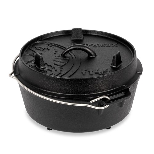Pro vaření a přípravu jídel na přímém ohni nebo i v grilu či troubě je litinový kotlík Dutch Oven ideální. Robustní kotlík je v nabídce ve dvou provedních - s nožičkami nebo bez nožiček. Vybírat můžete ze 7 velikostí (kotlíky se dají na sebe skládat). Litinový kotlík má všestranné využití: