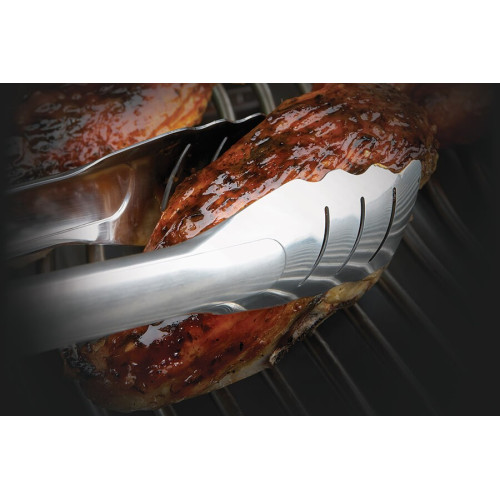 Precizní úchop: Speciálně tvarované zakončení kleští umožňuje pevně uchopit i těžké kusy masa, ale zároveň s nimi můžete citlivě manipulovat i s drobnou zeleninou nebo plátky slaniny.