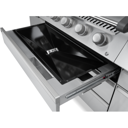 Efektivní odvod tuku: Gril Napoleon Prestige Pro WiFi je navržen tak, aby přebytečný tuk a šťávy z grilování byly bezpečně odváděny do odkapové misky. Přes konickou nádobu pod grilovací vanou je tuk směrován do samostatné misky.