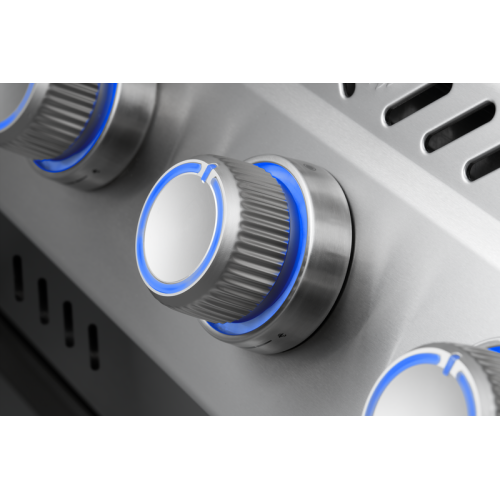 Podsvícení RGB Spectrum NIGHT LIGHT™: Knoflíky s technologií SafetyGlow mění barvu z modré na červenou, pokud protéká plyn. Barvu podsvícení si navíc můžete v aplikaci nastavit přesně podle své nálady.