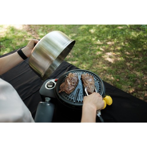 Nahřátý je za 2-3 minuty a ačkoliv vnitřní teplota dosahuje až 300 °C, gril zůstává díky své jedinečné konstrukci chladný na dotek a vy jej můžete během grilování přenášet kam potřebujete.