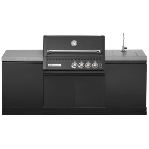 v základu a za základní cenu kuchyně Crossray 4 Black Line (215 Series) obsahuje gril a 2 boční skříňky s horní kamennou deskou (61,5 cm);