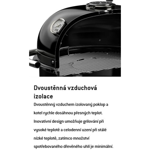 Všestranné využití: Tento gril zvládne vše od grilování steaků po uzení brisketu nebo pečení pizzy. Jeho možnosti jsou téměř neomezené.